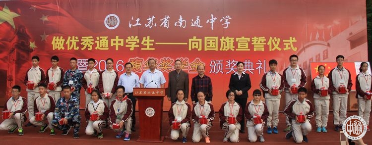 10月10日下午,2016级高一新生“做优秀通中学生——向国旗宣誓仪式暨2016馥华奖学金颁奖典礼”在学校操场隆重举行。馥华奖学金创立人、我校1953届著名校友、中科院院士、复旦大学数学系教授李大潜出席颁奖典礼。仪式由校团委副书记姜晖主持。