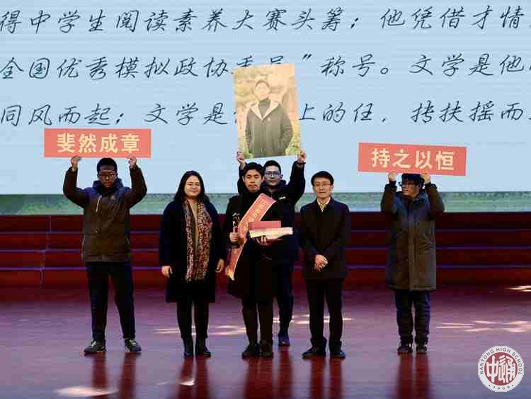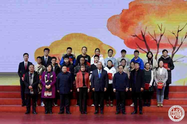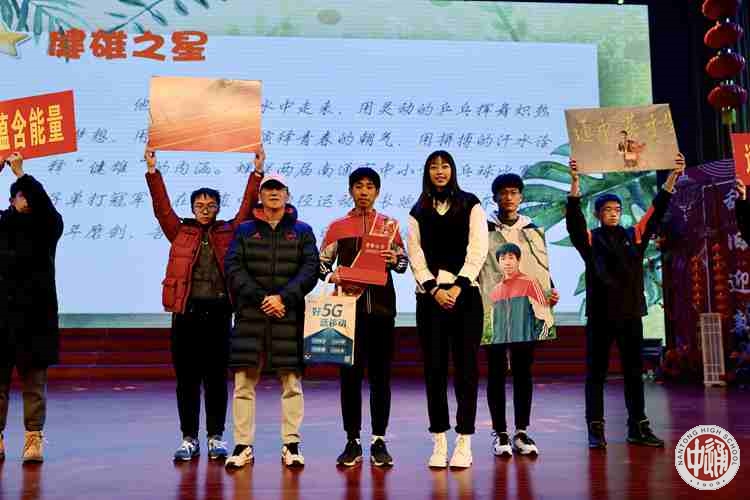 相关学科主任、年级部副主任以及知名校友、家委会代表分别为年度“文明之星”高二4班张玉颜、“关爱之星”高二12班陈思宇、“科技之星”高三9班俞亦涵、“文学之星”高二17班尤章恒、“宏志之星”高二4班谭铖、“才艺之星”高二17 班刘宇豪、“新荷之星”高二15班张宁馨、“健雄之星”高二11班胡扬栋、“勤奉之星”高二14班李菁阳、“诚恒之星”高三2班周诣超十位校园明星颁发荣誉证书和奖杯、奖品。