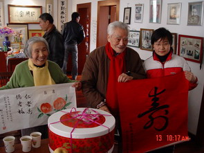 2月13日上午,学校党、政、工、团联合委派代表前往百岁校友朱漱梅老先生家向老先生祝寿。