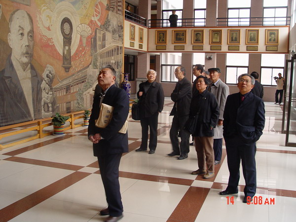 上图:驻足敬铭楼,仰望校友中的十九位国家科学院院士照片,寻找当年的同学。