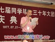 7月21日,我校七七届高中毕业生280余人借座国际大酒店,举行毕业三十周年大团聚庆祝活动。刘忠保副校长(下图)代表母校到会祝贺。