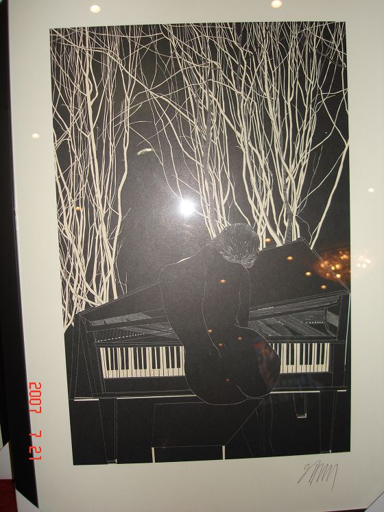 曾获世界版画大赛金奖第一名,现为西班牙巴塞罗那艺术博士生的冷冰川先生也是七七届校友。他委托组委会向每一位到会的班主任和课任老师赠送了他的版画《春夏秋冬》(下图),祝愿母校和老师四季平和,四季如歌。