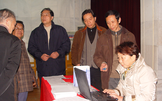 这次会议的主要议题是筹备各届校友会和征求对《百年校庆活动方案提纲》的意见。下图中校友们正从校史办的老师处复制校友名录。