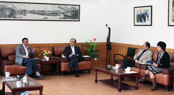成尚荣曾任我市通师二附小学校长,是我校校长缪建新的老师。此次师生相见分外亲切,双方就通中百年教育文化的外部环境和内在逻辑之间的辩证关系展开了充分讨论。