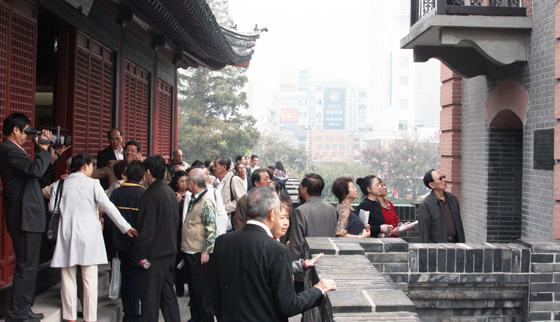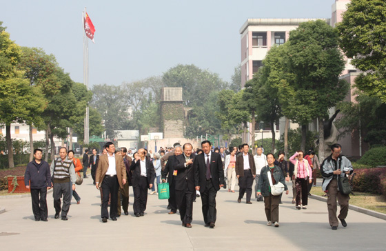 11月5日,已故爱国华侨、著名教育家、我校1916年国文教师李春鸣先生(左图)的学生一百二十余人来访我校。