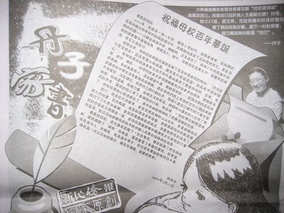 留学新西兰的通中校友宋丹子(女)现为新西兰最有影响的华人周刊《新民侨报》“丹子家书”专栏作家。在母校百年华诞之际,宋丹子于2009年3月20日在该栏目发表《祝福母校百年华诞》贺函,遥寄对母校的热切思念与衷心祝福。
