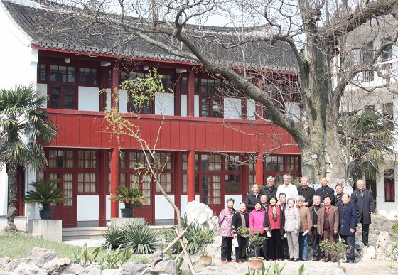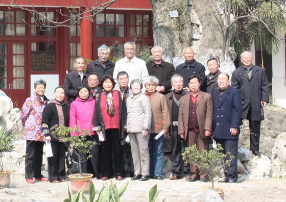 4月1日上午,我校五八届初三3班的二十多个老校友回到母校,在老楸树下合影留念。