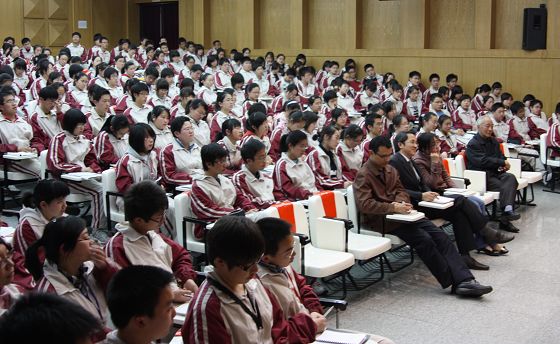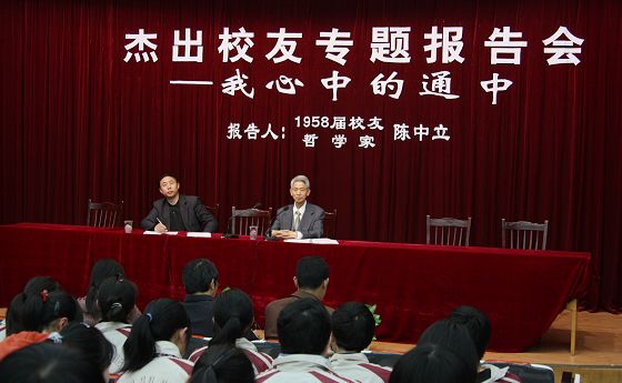 4月23日,74岁高龄的我校杰出校友、哲学家陈中立先生回母校为师生做了“我心中的通中”专题讲座。讲座由校党委书记韩明飞(下左)主持。