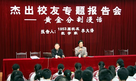 4月26日,我校1953届校友、中国科学院院士李大潜教授出席了上午的通中百年校史陈列馆开馆仪式后,于下午在我校科学楼报告厅给在校学生作“黄金分割漫话”专题讲座。