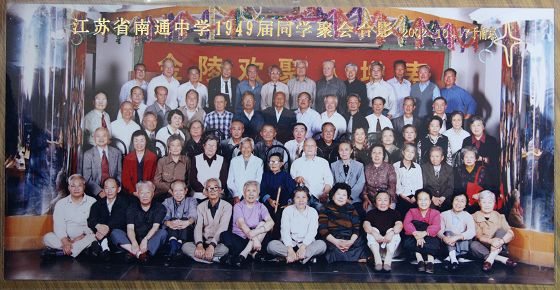 以下是汤老教过的我校1949届校友于2002年在南京与汤老的合影,第二排居中的是汤老夫妇。