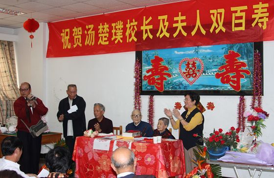 汤老是新中国成立前后我校物理老师,后担任南京电子技术学院校长。在我校百年校庆盛典前夕,汤老特地发来贺函,成“百岁老人贺百年母校”一段佳话。此次汤老及夫人双百寿庆活动由汤老的学生和南京电子学院工会联合举办。