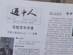 去年下半年,我校五八届校友值毕业五十周年之际集体编写了《献给母校百年华诞》纪念专刊(下左图);今年四月,我校四九届校友编辑的《通中人》刊物亦推出《母校百年华章》专号(右)。