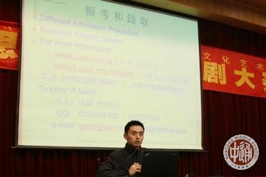 中午12点左右,笔者便和几位同学来到报告厅占座,但没有出现意料之中的人满为患的情况,人少更好,大家可以畅所欲言,交流也更加方便。12点半,介绍会准时开始,程新宇同学先做了自我介绍,然后直接切入正题,浅谈了香港中文大学闻名世界的书院制度。当说到著名诗人北岛和著名数学家丘成桐在该校任教时,笔者和同学不禁稍稍激动了一下,渴望之情油然而生。随后他又讲到自己所在书院的院长曾获得诺贝尔经济学奖时,笔者的向往之情更是溢于言表。 |