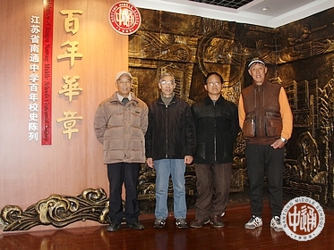 12月3日下午,我校1962届高三5班校友代表岳兆麟等一行4人回到阔别50年的母校,深情回忆当年的恩师徐质夫,并代表全班同学向母校赠送毕业50周年纪念瓷盘。瓷盘正面是盛开的寒梅彩图,上有“难忘通中1962-2012”铭志词,背面是全班53人留名。 校友代表们参观了百年通中校史陈列馆,在恩师徐质夫像前合影留念。校党政办主任成平接待校友并向校友们介绍了近年通中发展情况。 |
