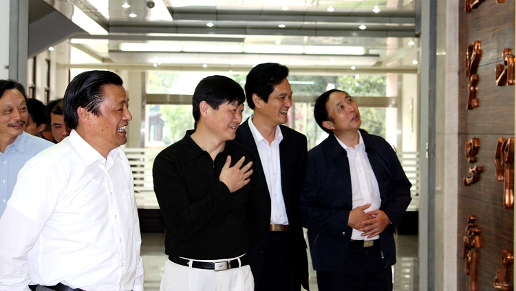 胡副厅长一行参观了图书馆和校史馆。上图是在校史馆前绿荫园,背景是百年前建校时的“公立中学堂”老校门;下图是在图书馆内通中前辈的“高山仰止,见贤思齐”题字前。