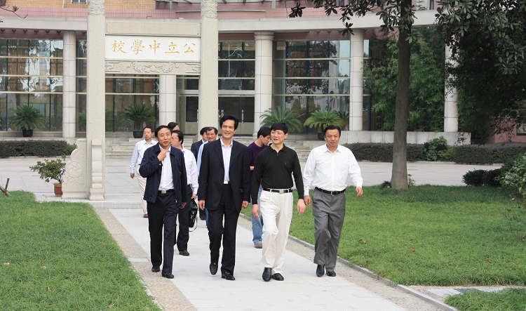 10月18日,江苏省教育厅副厅长胡金波(下图右二)在市教育局局长缪建新(右一)陪同下视察我校,了解我校新百年办学思想和初步规划。我校校长姚天勇(左二)、党委书记韩明飞(左一)作了具体汇报,胡副厅长对我校办学业绩给予了充分肯定。