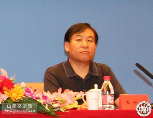 刚于7月5日主持中宣部中央文明办“迎奥运、讲文明、树新风”电视电话工作会议的中央文明办专职副主任王世明(上图,下图前排中)于7月7日来我市指导工作。江苏省委常委、宣传部长杨新立和南通市委书记罗一民陪同王世明来我校视察。校长缪建新介绍了我校未成年人思想道德建设的有关情况。王世明在参观校史馆并观看了我校专题片后感慨地说:在通中的时间虽短暂,但给我的印象很深刻。