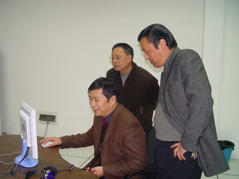 李天顺副司长在图书馆电子阅览室兴致勃勃地上网浏览我校网站