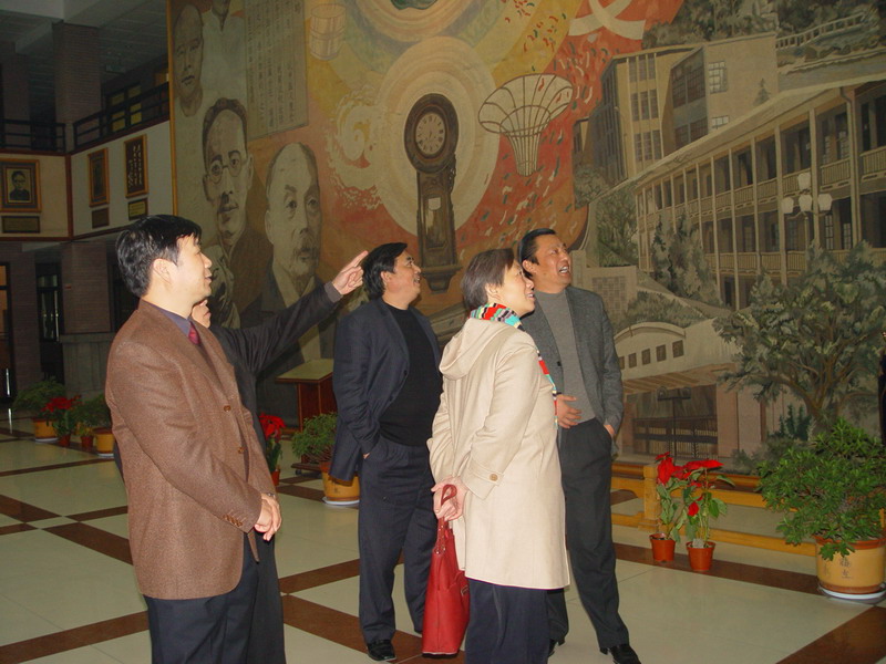 李天顺副司长一行在参观敬铭楼大厅里的17位院士铜像