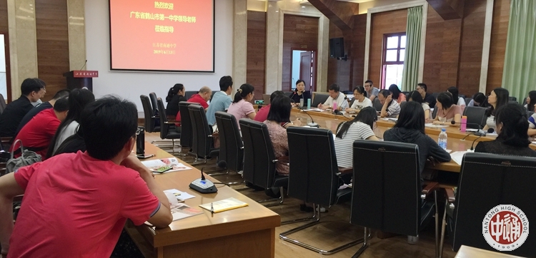 6月13日上午,广东省鹤山市第一中学教师代表一行35人在特级教师、正高级教师叶炼副校长的带领下到访我校,我校陈建云副校长、教科处陆军主任与来访教师进行了交流研讨。