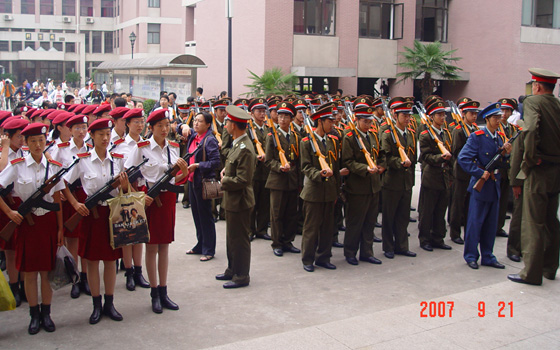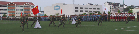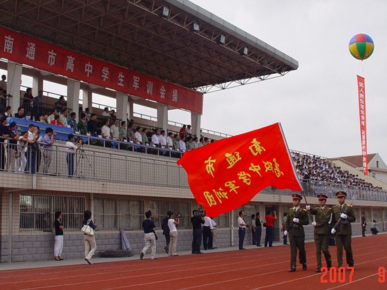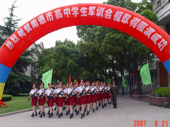 9月21日,南通市高中学生军训会操在紫琅中学举行,来自市区及各县的八所老牌省重点高中参加了比武。 比武共分阅兵式、分列式、队列会操和自选科目四个项目, 我校以总分第一的成绩获得一等奖。 |