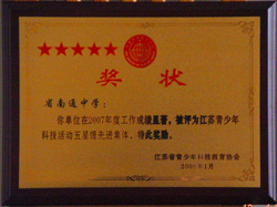 我校荣获省科技活动五星级先进集体称号 来源:通中 发布时间:2011-04-12 13:06:21 浏览次数: 次 【字体:小 大】 我校在2007年度青少年科技教育工作中成绩显著,江苏省青少年科技教育协会于2008年1月授予我校“江苏省青少年科技活动五星级先进集体”荣誉称号。 分享到: 【打印正文】