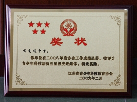 我校连续三年获省科技五星级先进集体称号 来源:通中 发布时间:2011-04-12 13:06:23 浏览次数: 次 【字体:小 大】 近日江苏省青少年科技教育协会向我校颁发奖状和荣誉证书,表彰我校在2008年度科技教育工作成绩显著,被评为“青少年科技活动五星级先进集体”。这是我校连续第三年获此殊荣。 前两次获奖报道详见以下地址。 http://news.ntzx.net.cn/xxxw/news20080218/163129.html http://news.ntzx.net.cn/xxxw/20070210/105735.html 分享到: 【打印正文】