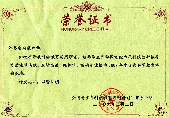 我校在开展科学教育实践研究、培养学生科学探究能力及科技创新辅导方面注重实效,成绩显著,被评为“2008年度优秀科学教育实验基地”。