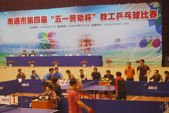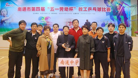 南通中学教工乒乓球队同心协力,敢打敢拼,在与市总工会队的冠亚军角逐中,以3:4负于对手,屈居亚军。这是历届比赛中我校取得的最好成绩,实现了赛前确定的“保三进二”的目标(上届为第三名)。