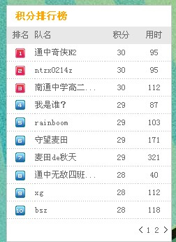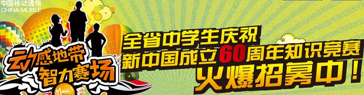 为庆祝新中国成立60周年,展现当代中学生风采,中国移动江苏公司联合江苏教育电视台全新开辟动感地带智力赛场益智节目。我校团委、学生处精心组织,积极发动学生参加比赛,选手三人一组学校共报名100多组,在这最权威的省内中学生智力竞赛平台上,我校参赛选手大显通中学子风采,通过智力答题的方式闯关晋级,秀出非凡智慧,目前全省前十排行榜上,我校占据7名,前20名占据10组,尤其令人惊喜慨叹的是我校学生以绝对优势包揽了全省前5名!!!