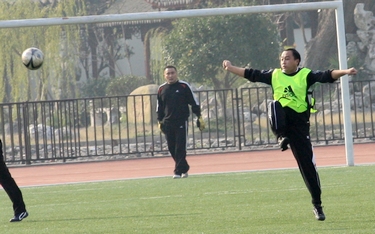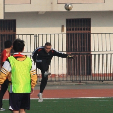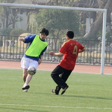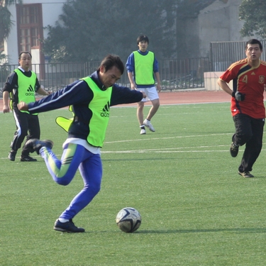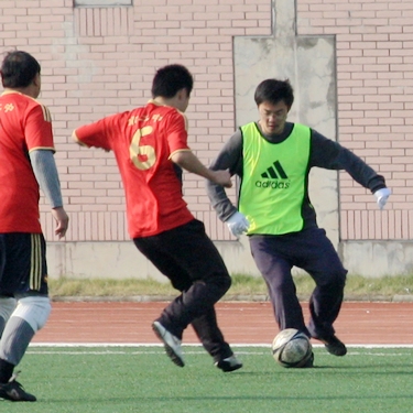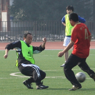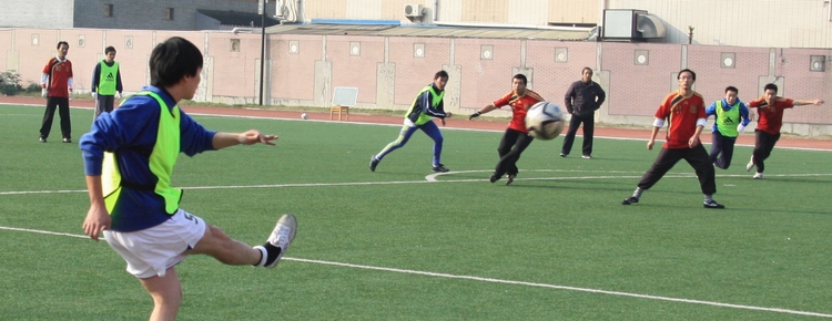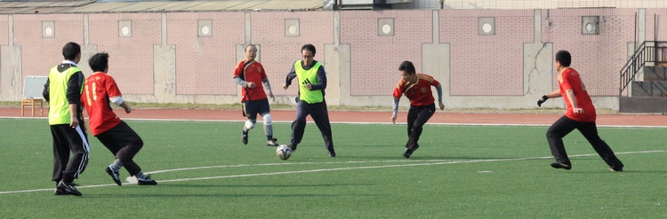 今日新闻请尽情欣赏通中教工足坛健儿赛场英姿,穿荧光绿背心的是通中队员。先看一组铜墙铁壁般的后场防守镜头。