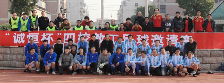 11月21日,启秀中学、小海中学、市二中与我校“诚恒杯”四校教工足球邀请赛在我校操场举行。比赛采用单循环制,上午我校教工队胜市二中队;下午我校与启秀中学争夺冠亚军,双方激战到白热化,最终踢平并列第一。