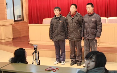 12月9日,组委会派专人前来我校,通过录像和笔试方式采集信息。接收资格认定的10个参赛小组中除我校9个小组外还有南通地区兄弟学校海安曲塘中学小组。上下各图是信息采集现场,其中下图分别是我校初赛获全省第一名的选手(左)和曲塘中学选手(右)。