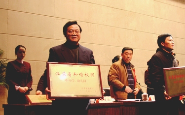 12月11日下午,在南通市中小学德育工作会议上,市领导和教育局领导向获得此项荣誉称号的学校代表颁发了奖牌。左图是我校校长助理沈惠祥领奖镜头。 根据苏教基〔2008〕5号文件《省教育厅关于在全省中小学幼儿园深入开展和谐校园创建活动的通知》,获得“江苏省和谐校园”称号是教育系统评选江苏省文明单位的必要条件。 (本次报道图片由教育局提供) |