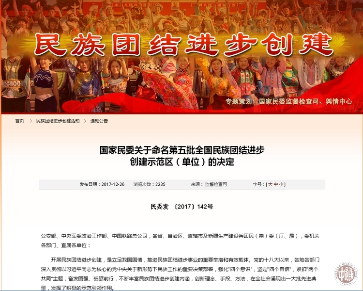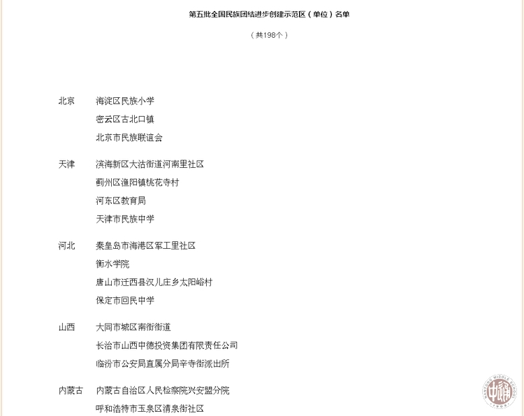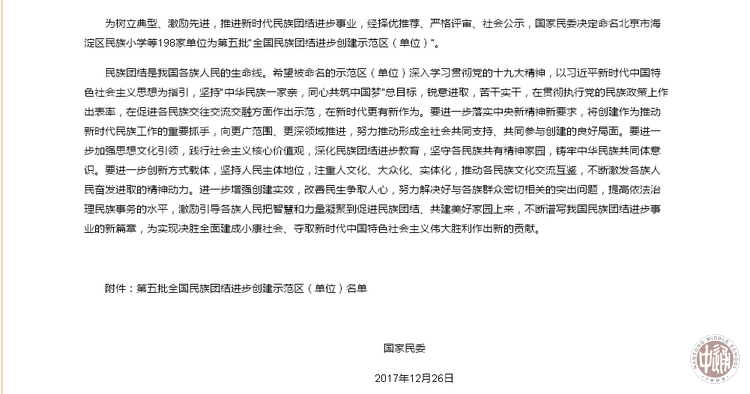 为树立典型、激励先进,推进新时代民族团结进步事业,经择优推荐、严格评审、社会公示,国家民委决定授予全国198家单位为第五批“全国民族团结进步创建示范区(单位)”。根据《国家民委关于命名第五批全国民族团结进步创建示范区(单位)的决定》(民委发 〔2017〕142号)文件精神,江苏省南通中学成为江苏省五个创建示范区(单位)之一。
