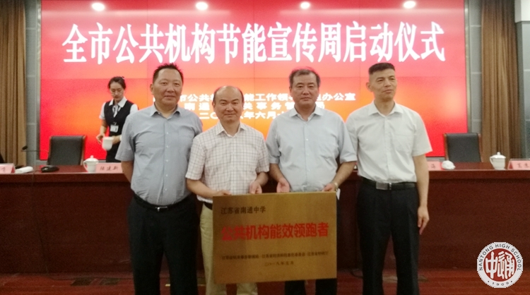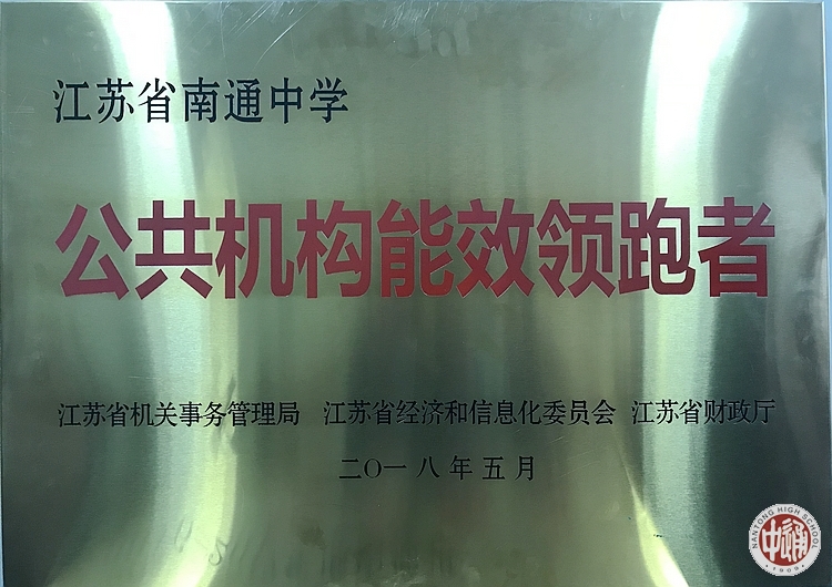 我校既是南通市获省第一批公共机构能效领跑者的6家单位之一,而且是南通市第一家国家公共机构能效领跑者单位,也是江苏省中小学中唯一获此殊荣的学校。近日,国家机关事务管理局、国家节能办将颁发牌子。这是继去年我校获首批全国文明校园后的又一国家级荣誉。