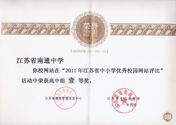 经评审,江苏省南通中学网站获评“全国中小学百佳校园网站”称号。