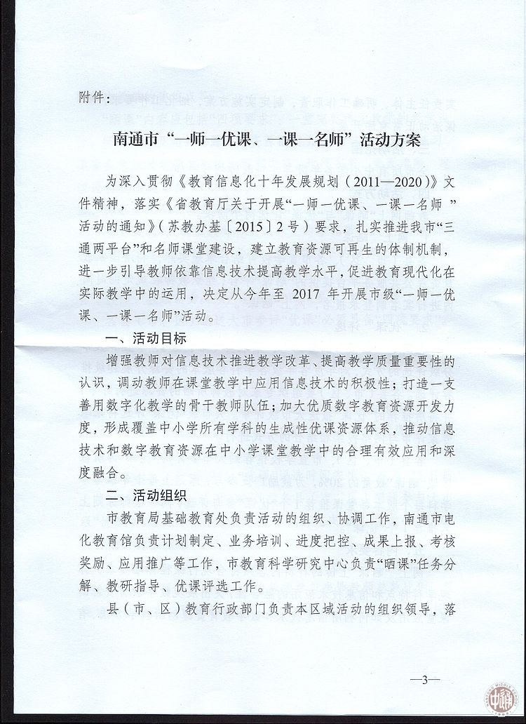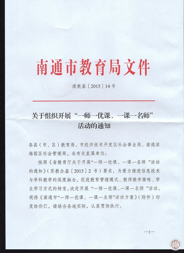 关于组织开展“一师一优课、一课一名师”活动的通知