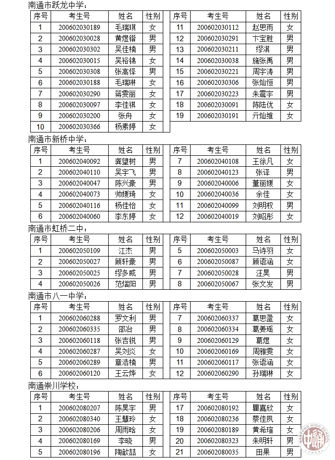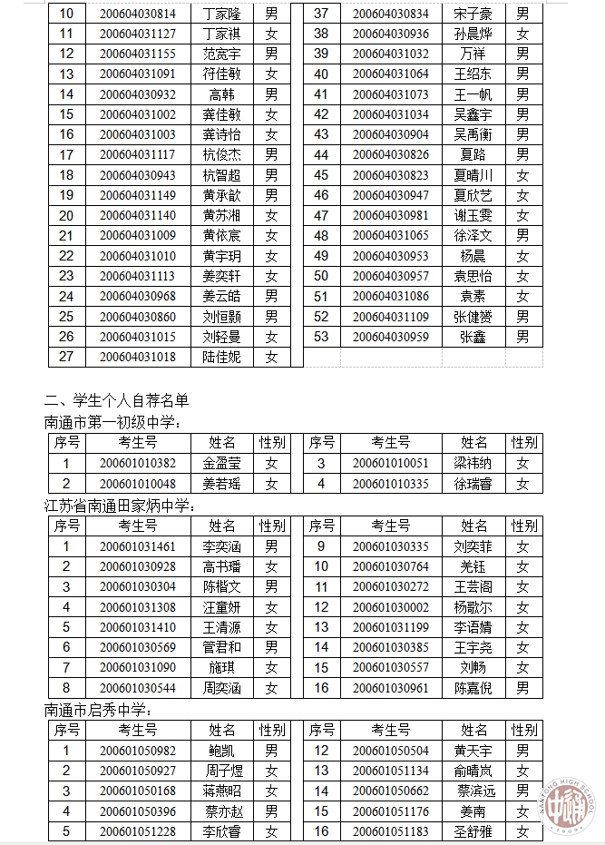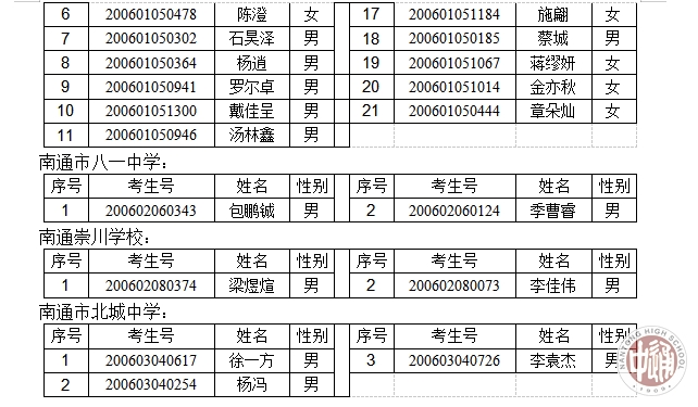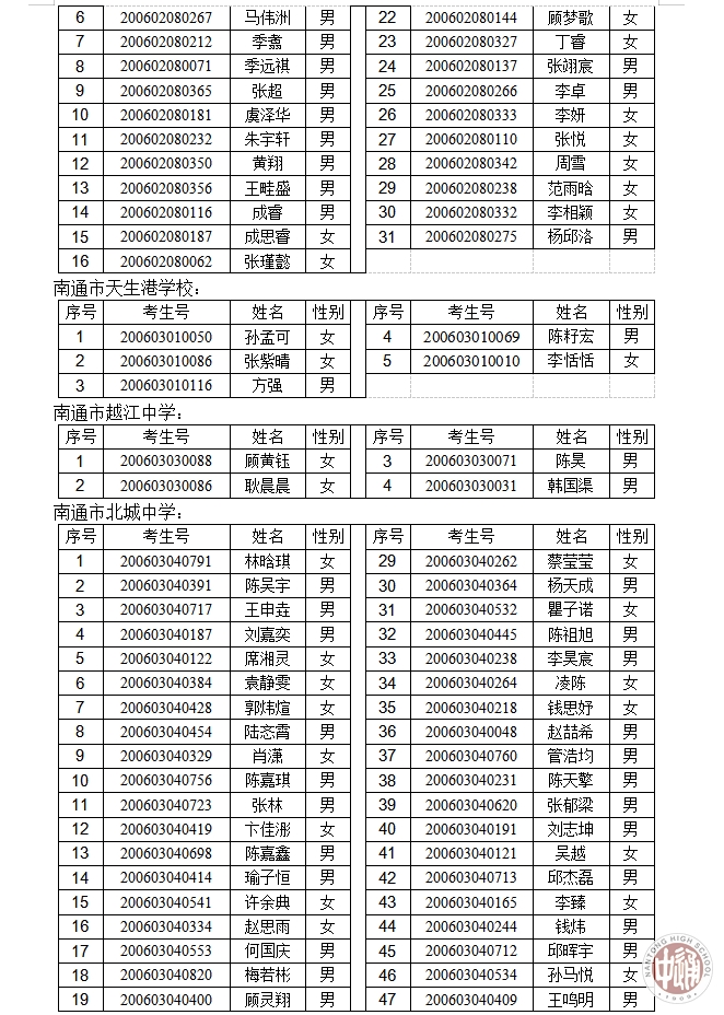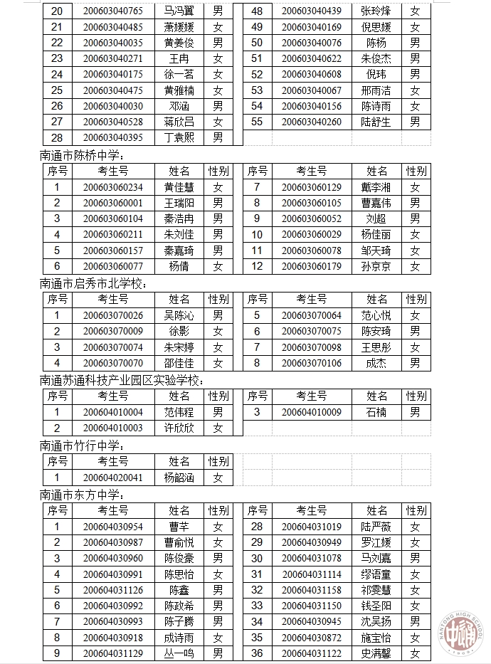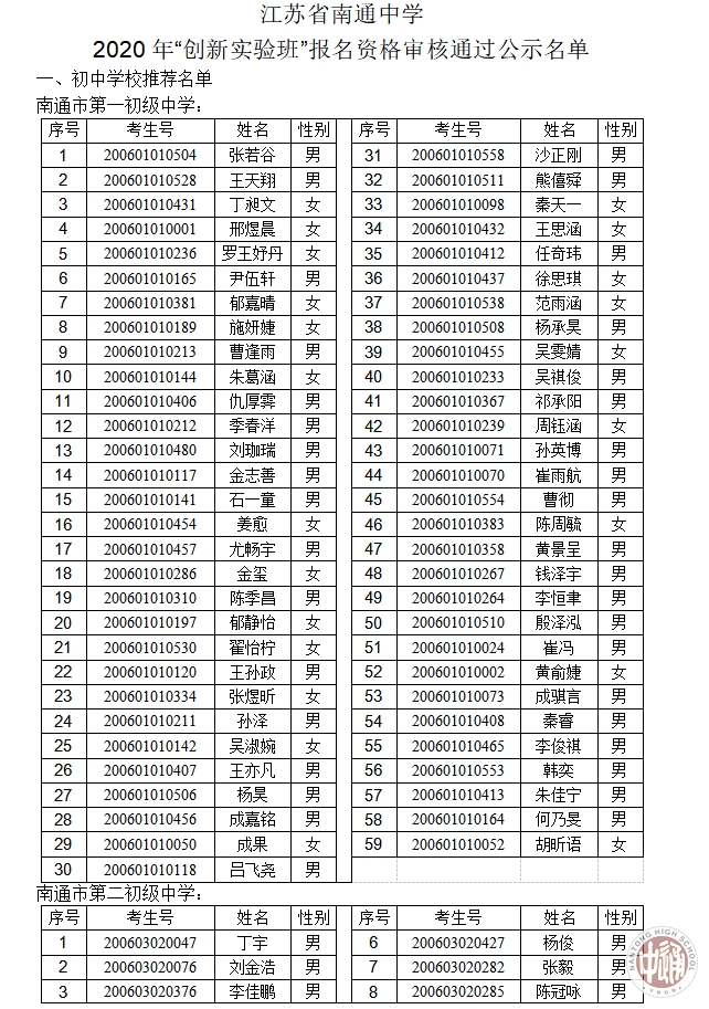 2020年南通中学“创新实验班”报名资格审核通过公示名单