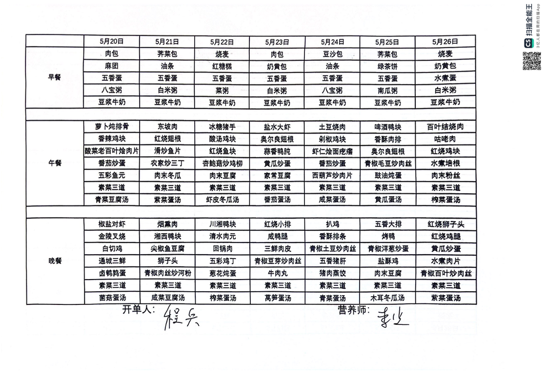 江苏省南通中学南区食堂航空班窗口一周菜谱(2024.5.20-5.26)