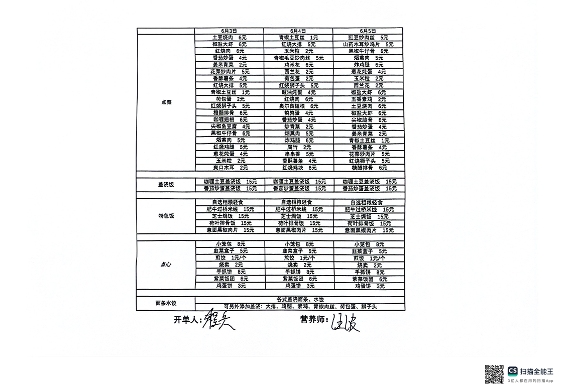 江苏省南通中学南区食堂菜谱(2024.6.3-6.5)