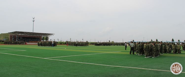 上午8:00,18个班700余名新生分乘17辆大巴从学校出发,10:00左右车队抵达基地。班主任与教官交接名单后,全体新生即按班级顺序依次编为第1-17中队列队。