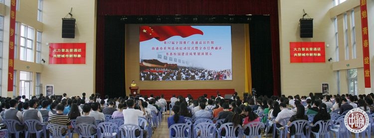 9月15日下午,第17届全国推广普通话宣传周南通市系列活动启动仪式暨全市经典诵读、书香校园建设成果展演展示活动在我校新健雄馆举行。市语委主任、副市长朱晋出席启动仪式,市语委副主任、市教育局局长郭毅浩发表讲话。 |