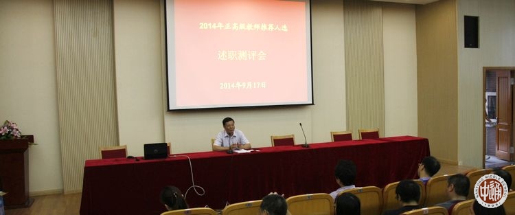 9日17日下午,学校在科学楼三楼报告厅召开全校教师大会,进行2014年正高级教师推荐人选述职测评活动。活动由副校长刘忠保主持。