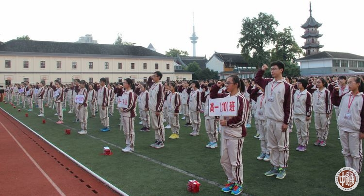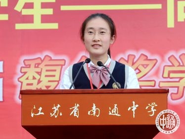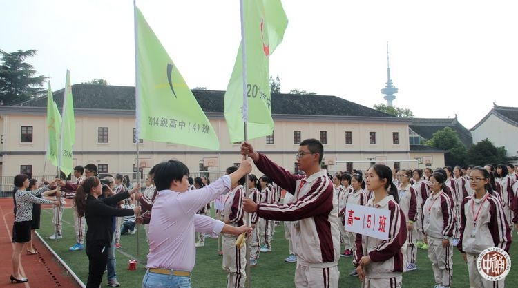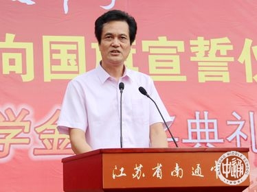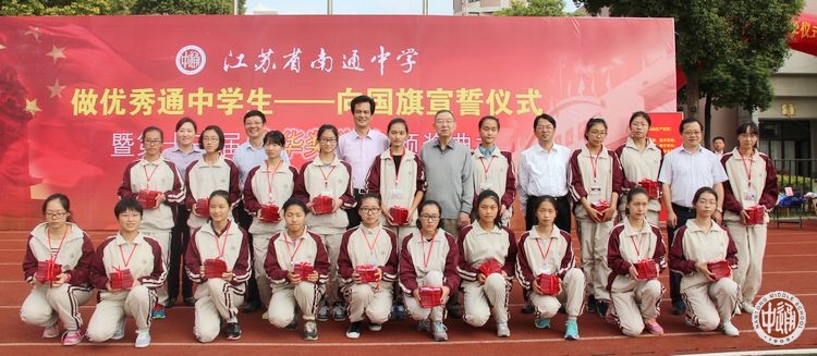 在我校2011届优秀毕业生、第九届馥华奖学金获得者、南京大学历史学系学生党员王珊珊带领下,全体高一新生高举右拳,面向国旗,庄严宣誓:热爱祖国、追求真理;诚于做人、恒于学问;谦逊奋进,好学多思;守纪苦练,积健为雄;做一个有理想、有道德、有文化、有纪律的优秀的通中学生!