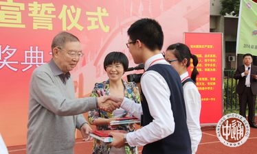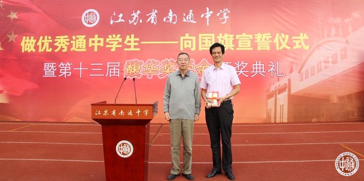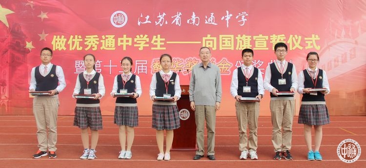 10月8日下午,2014级高一新生“做优秀通中学生——向国旗宣誓仪式暨第十三届馥华奖学金颁奖典礼”在学校操场隆重举行。高一年级全体同学参加了仪式活动。馥华奖学金创立人、我校1953届著名校友、中科院院士、复旦大学数学系教授李大潜出席颁奖典礼。仪式由校团委书记助理姜晖主持。