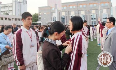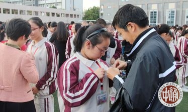 最后,全体家长走进学生队列,向自己的孩子赠送精心挑选的书籍,并亲手为孩子佩戴校徽。西藏班的老师们担任起来自雪域高原孩子们的临时家长,也为他们送上满满的祝福!仪式在柔美的音乐声与温馨的气氛中降下了帷幕。