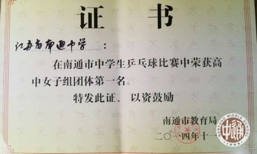 市中学生乒乓球比赛我校取得佳绩 来源:本站原创 发布时间:2014-11-11 16:02:28 浏览次数: 次 【字体:小 大】 在上周六举行的南通市中学生乒乓球比赛中,我校男队荣获高中组男子团体冠军,女队荣获高中组女子团体冠军。其中男队包揽了男子单打前5名,女子单打获得了二、三、四名。 分享到: 【打印正文】