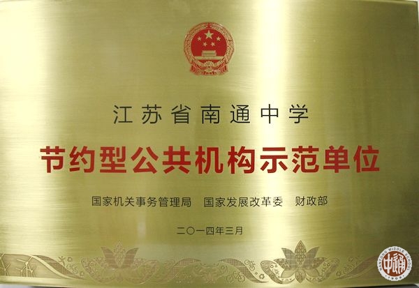 作为是一所底蕴深厚、特色鲜明、人才辈出的百年名校,南通中学先后获得“全国文明单位”“全国教育系统先进集体”“全国精神文明建设工作先进单位”“全国五四红旗团委标兵”等国家级荣誉称号。由于学校高度重视节约型校园建设工作,多措并举,效果显著,还先后荣获“南通市绿色学校创建示范单位”“南通市公共机构节能先进单位”“江苏省绿色学校”“江苏省节水型学校”“江苏省公共机构节能示范单位”等荣誉称号。本次获评“全国首批节约型公共机构示范单位”,是对我校创建工作的充分肯定。下阶段,学校将进一步深化创建工作成果,不断完善并充分发挥创建工作的长效机制,为国家环保事业的发展,构建节约型社会作出新的更大的贡献。