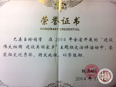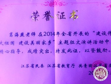 根据江苏省民委、省教育厅、团省委联合下发的文件《关于对“两个建设”主题征文演讲活动获奖情况的通报》:我校高三18西藏班崔秦同学获得征文比赛一等奖、演讲比赛三等奖;高三17西藏班巴桑玉珍同学荣获优秀征文奖;语文老师葛海燕精心指导、成绩突出。